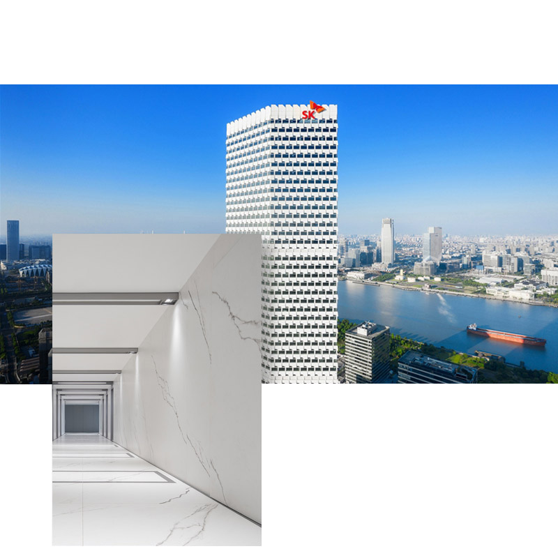 Dans le quartier à l’est du fleuve Huangpu, exactement appelé Pudong, se dresse la SK Group Tower, le dixième bâtiment le plus haut de Shanghai, 275 mètres de hauteur, qui s’élance impérieux au-dessus du quartier financier-commercial situé à proximité du Shanghai World Expo Center, très fréquenté en raison de ses pavillons futuristes et de l’Aéroport international de Pudong, l’une des plus grandes escales aériennes de Chine.