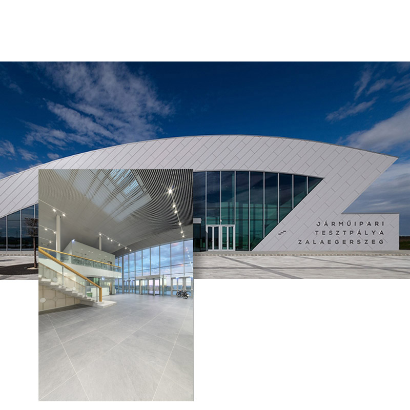 Parmi les derniers projets internationaux, pour lesquels Slimtech a été choisi comme revêtement de surfaces, celui de Zala Zone en Hongrie, le site qui accueille le centre de recherche pour voitures électriques à conduite autonome, exprime la parfaite synthèse entre le contenu et la forme.