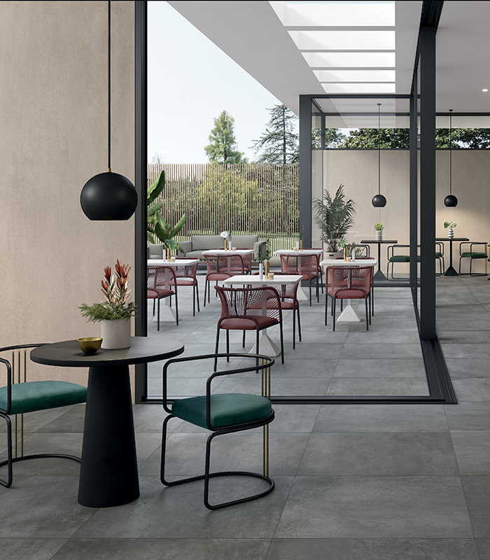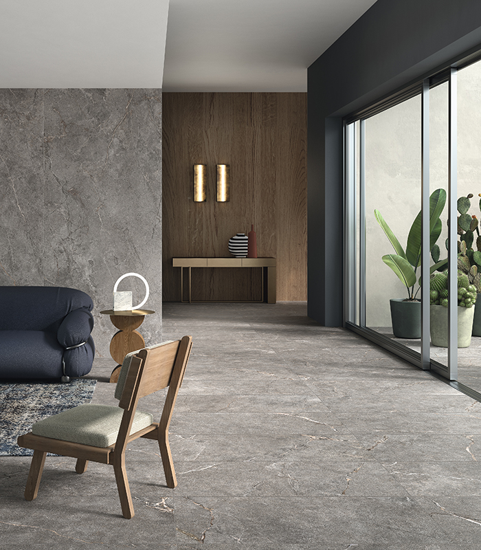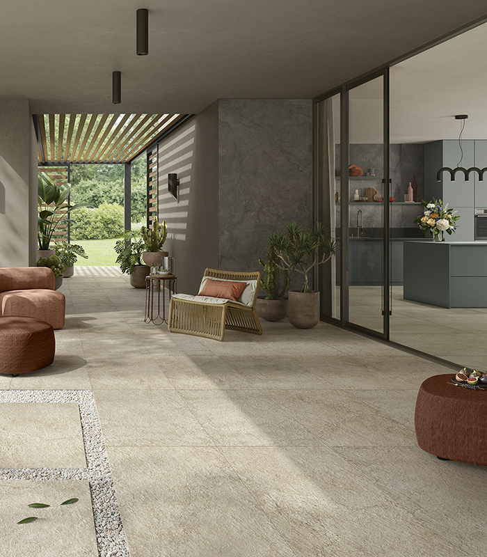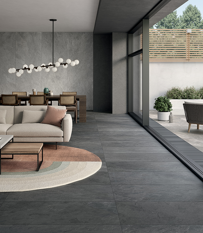 Pulse n’imite pas la nature : elle la réinterprète. C’est une pierre imaginée, puissante et élégante, traversée de fragments, de signes et d’irrégularités qui évoquent la force primordiale de la terre sans la reproduire fidèlement. Une surface vivante et identitaire, capable de créer des espaces fluides et continus, où sols, revêtements et éléments de mobilier se fondent en un seul récit matière. Avec Pulse, la céramique dépasse son rôle traditionnel et devient architecture, geste créatif, liberté de projet.