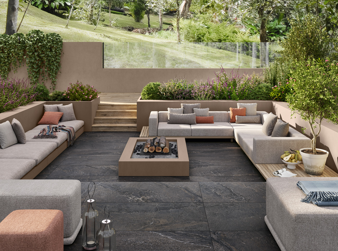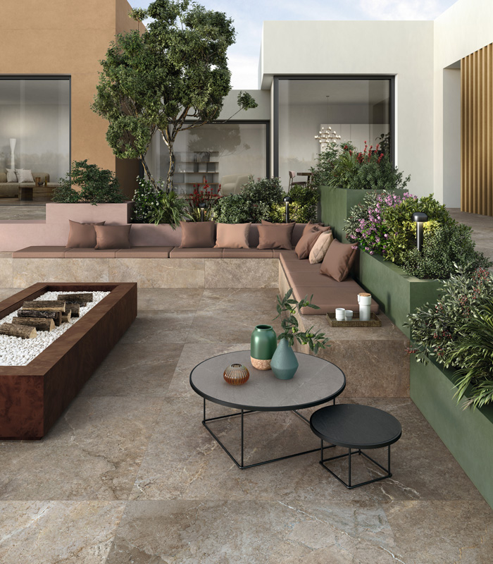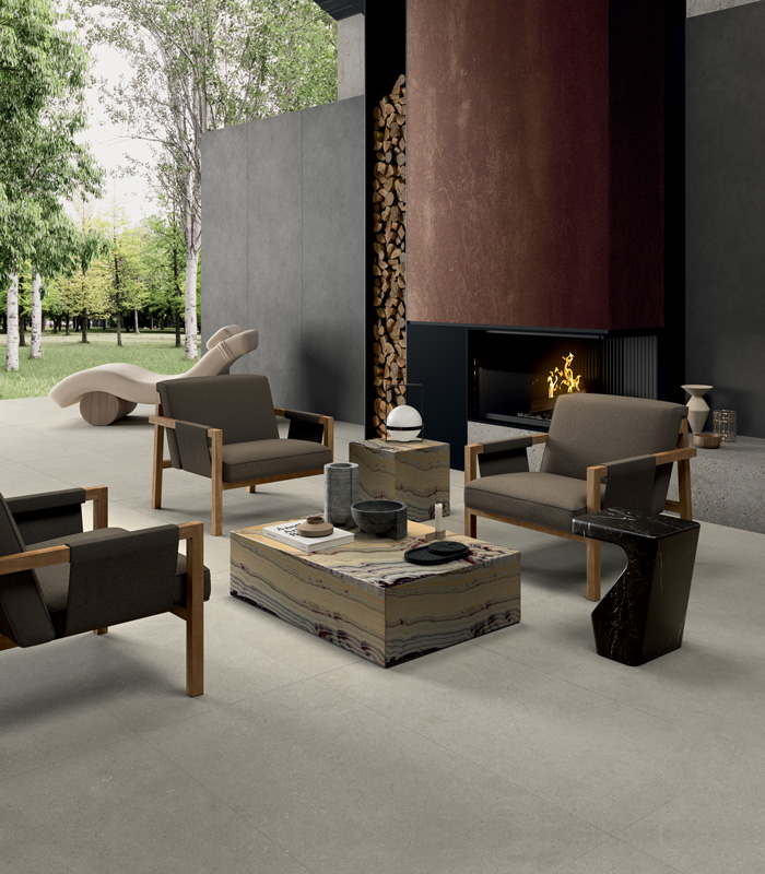 Avec sa beauté minérale et raffinée, Intense est le choix idéal pour des espaces outdoor conçus comme de véritables pièces à ciel ouvert. Les surfaces expriment un équilibre entre force matérielle et légèreté visuelle, créant des environnements élégants, accueillants et utilisables en toute saison.