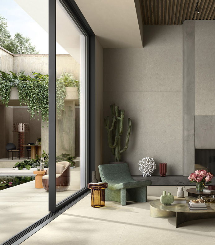 Présentée en avant-première à Cersaie 2025, Pulse incarne pleinement le concept d’outdoor unbound : une matière conçue pour dépasser les frontières entre intérieur et extérieur et accompagner le projet dans toutes ses déclinaisons. Une pierre inédite, contemporaine et dynamique, qui crée continuité et liberté d’expression, redéfinissant la manière de vivre les espaces.