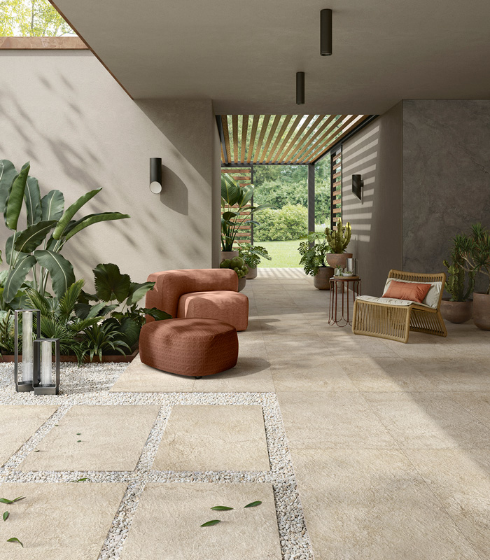Dans le design contemporain, l’outdoor n’est plus considéré comme un espace séparé, mais comme une dimension de plus en plus intégrée au projet architectural. Terrasses, patios, balcons et jardins se transforment en environnements structurés, où revêtements de sols et de murs pour l’extérieur en grès cérame sont conçus avec la même attention que les espaces intérieurs.