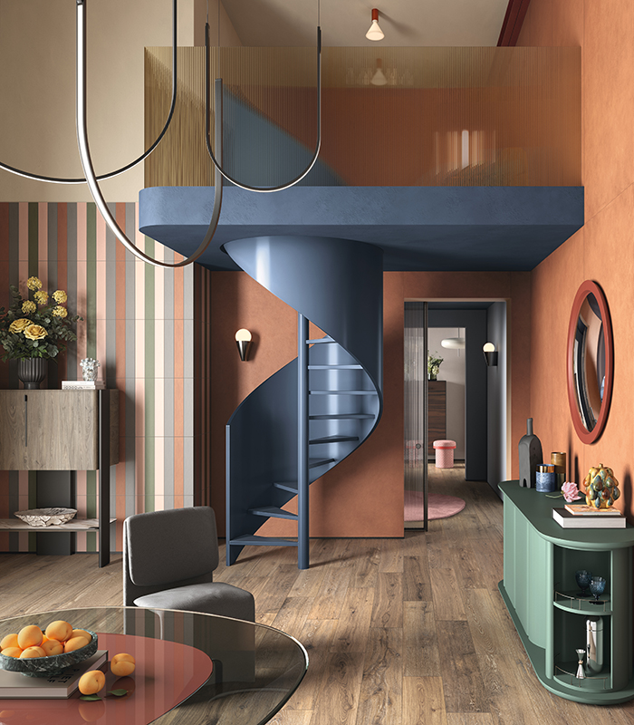 En parallèle, la valeur du mix & match matériel s’affirme, une approche qui permet d’associer de manière équilibrée couleurs pleines, textures naturelles et effets marbre. Cette technique compositionnelle définit des intérieurs dynamiques, personnalisés et riches en nuances. La céramique, grâce à sa polyvalence, devient un matériau clé pour interpréter cette tendance: elle permet d’intégrer différentes esthétiques tout en maintenant une continuité visuelle très contrôlée.