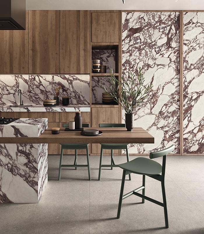 Un matériau capable de créer des atmosphères cohérentes, des paysages contemporains et des compositions caractérisées par un équilibre matériel qui reflète la manière dont nous vivons les intérieurs aujourd’hui.