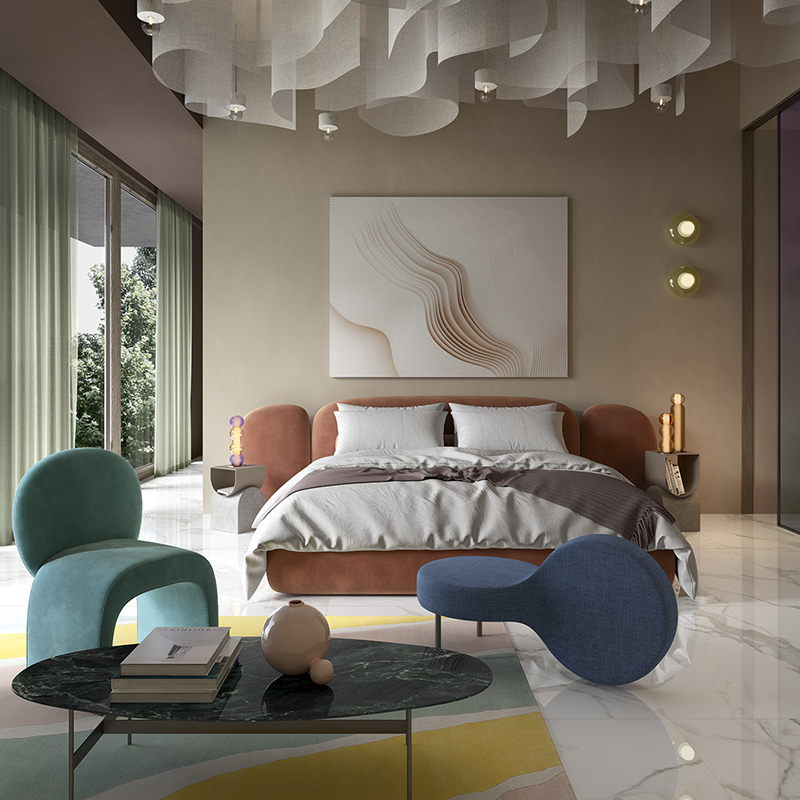 La collection incarne la séduction et le charme esthétique du marbre en le restituant de manière plus accentuée. Elle permet ainsi de créer des espaces absolument modernes qui s’accordent parfaitement avec la tendance du Digital Dreamscape.