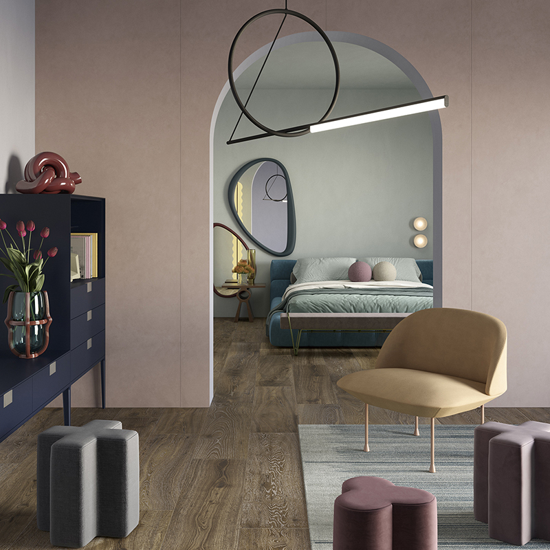 Dans ce paysage surnaturel, les surfaces en céramique trouvent ici leur place particulière de taille, offrant des textures et des finitions capables de traduire l’imagination en réalité. Chaque pièce se transforme ainsi en une expérience visuelle et sensorielle qui introduit un nouveau sens du « cosy », magistralement mis en scène par les collections de Lea Ceramiche qui, comme toujours, est capable de combiner une esthétique de conception visionnaire avec des performances techniques et des textures uniques. Des solutions capables d’interpréter le marbre, la pierre, le béton et le bois de manière originale et impeccable et de laisser place à l’expérimentation des formes, des couleurs et des surfaces. Les collections en grès cérame et en grès laminé, vastes et détaillées, présentent des éléments décoratifs raffinés qui contribuent à consolider le caractère unique de la marque.