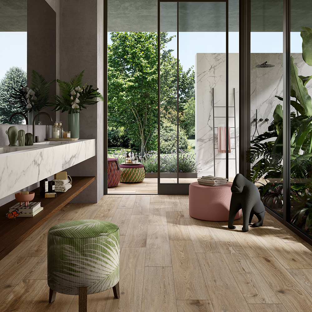 Bio Attitude reproduit la chaleur du bois sur une surface actuelle, polyvalente et durable. Avec ses tons organiques et ses veines délicates, elle est idéale pour les espaces équilibrés et relaxants. Une collection pour ceux qui recherchent harmonie, authenticité et beauté quotidienne.
