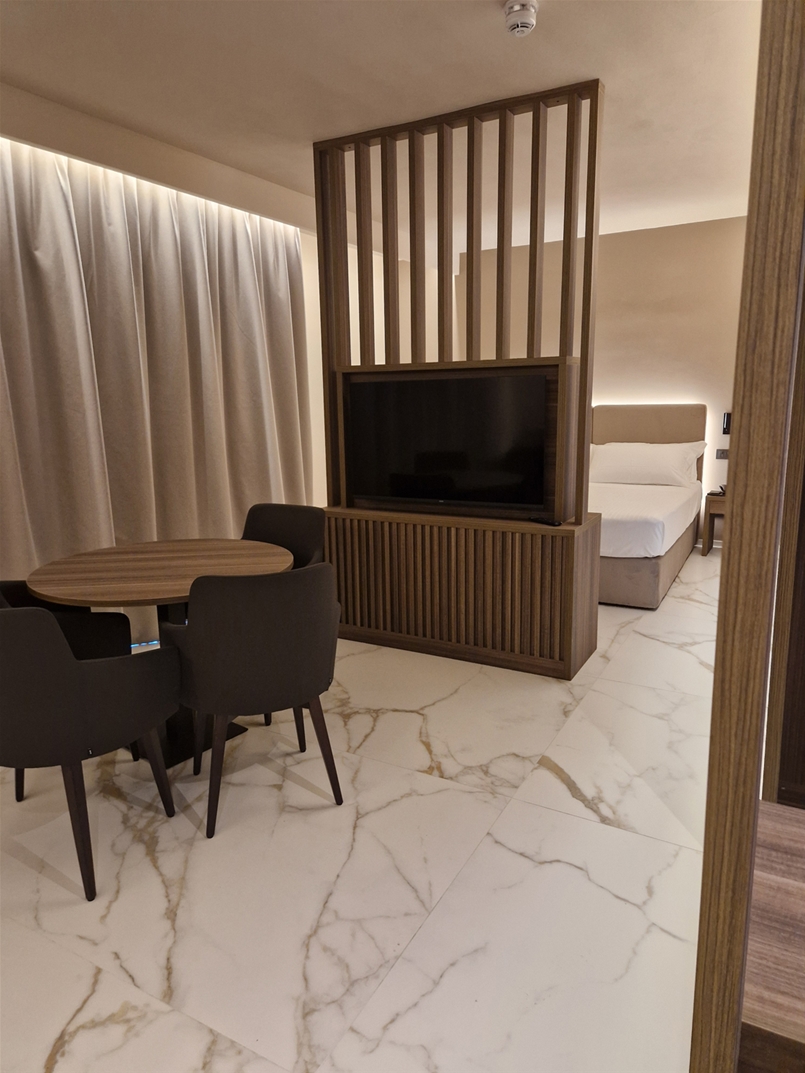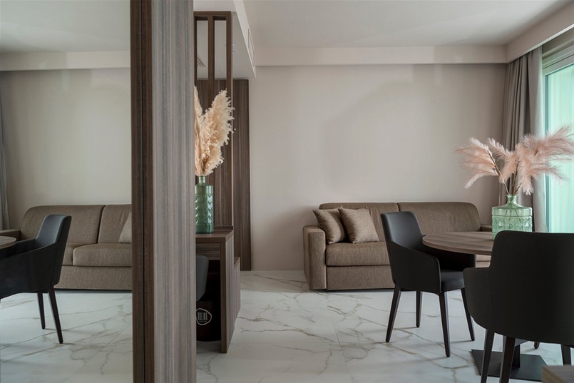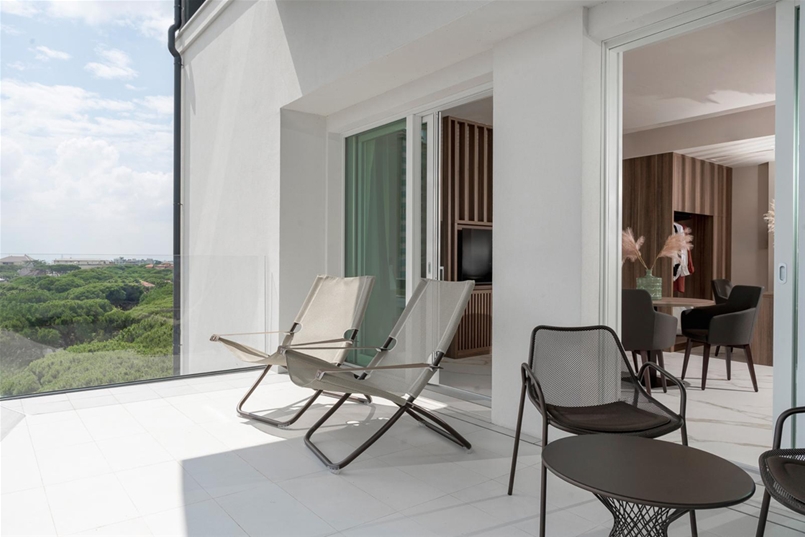 Les balcons des suites, quant à eux, sont finis avec la collection naturelle Masterpiece – Master White, qui complète l’ensemble avec une tonalité essentielle et contemporaine, en harmonie avec les lignes sinueuses des façades. Dans chaque espace, les surfaces Lea Ceramiche deviennent une partie intégrante de l’architecture : un dialogue entre design et technologie qui transforme l’espace en une expérience de bien-être et de beauté intemporelle.