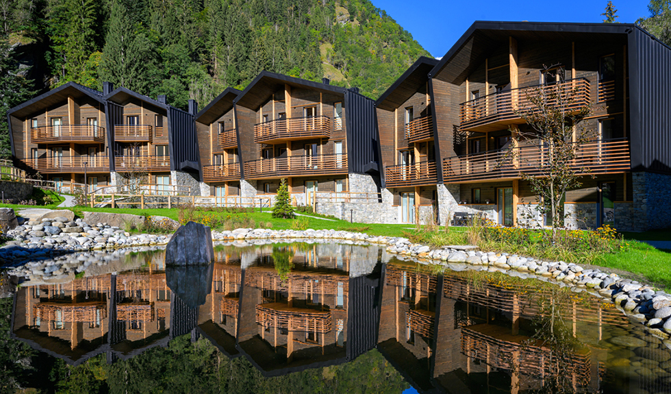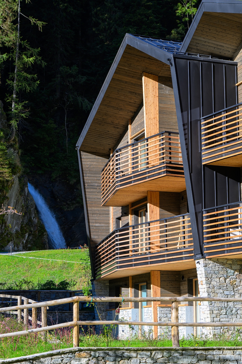 À Alagna Valsesia, entre forêts et torrents au pied du Mont Rose, Mountain Village — Cascata d’Otro réinterprète la tradition alpine dans une clé contemporaine. Signé par G22 Projects pour Pink Mountains, le complexe résidentiel est composé de huit bâtiments de classe A4, parfaitement intégrés au paysage et pensés pour une nouvelle manière d’habiter la montagne, durable et raffinée.