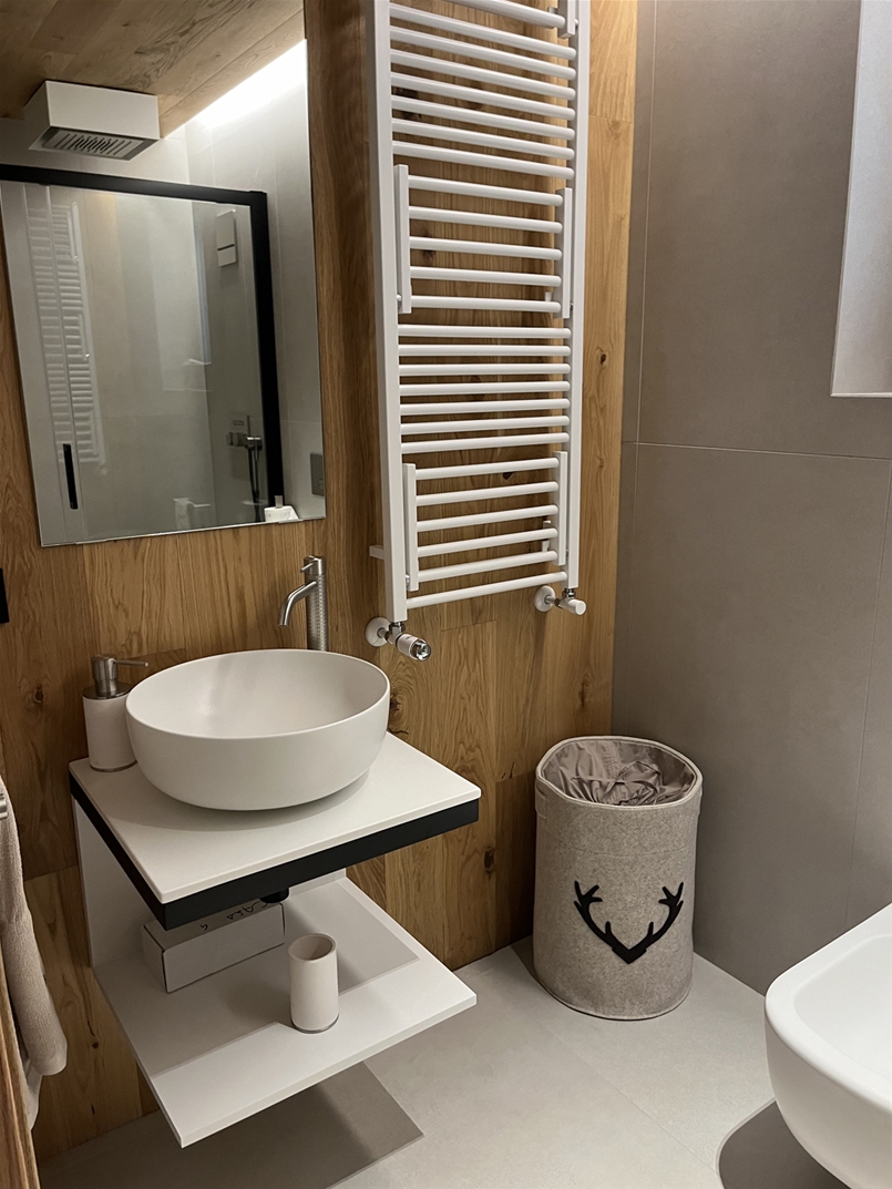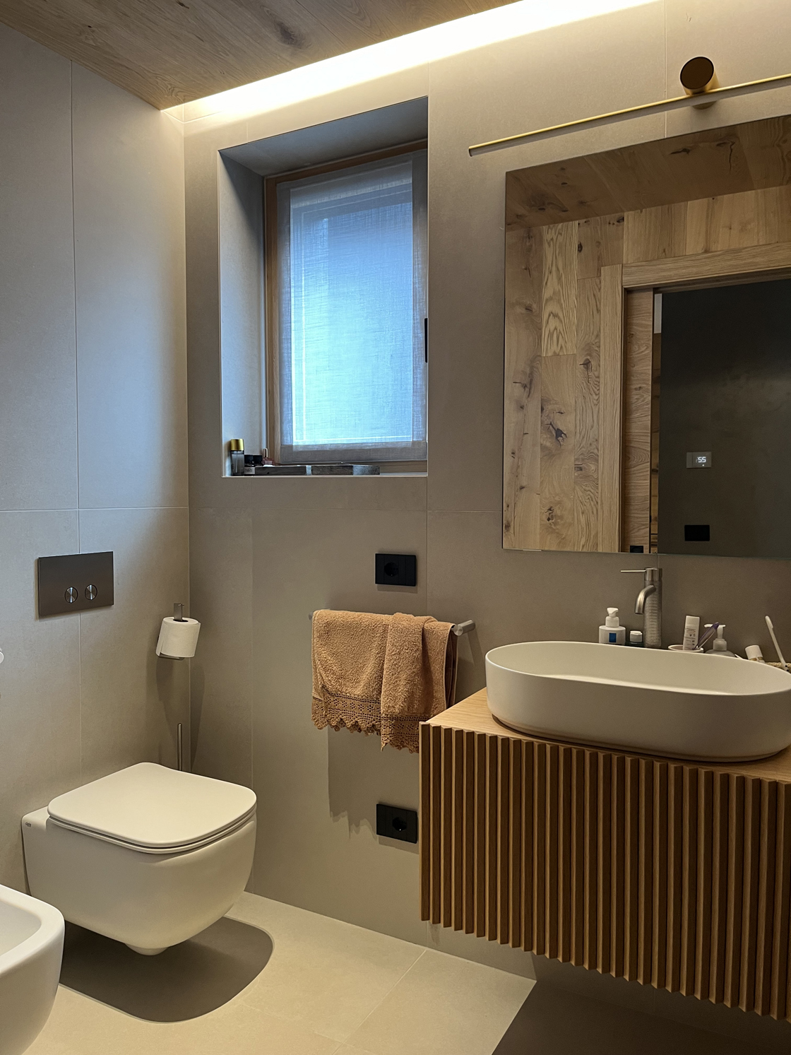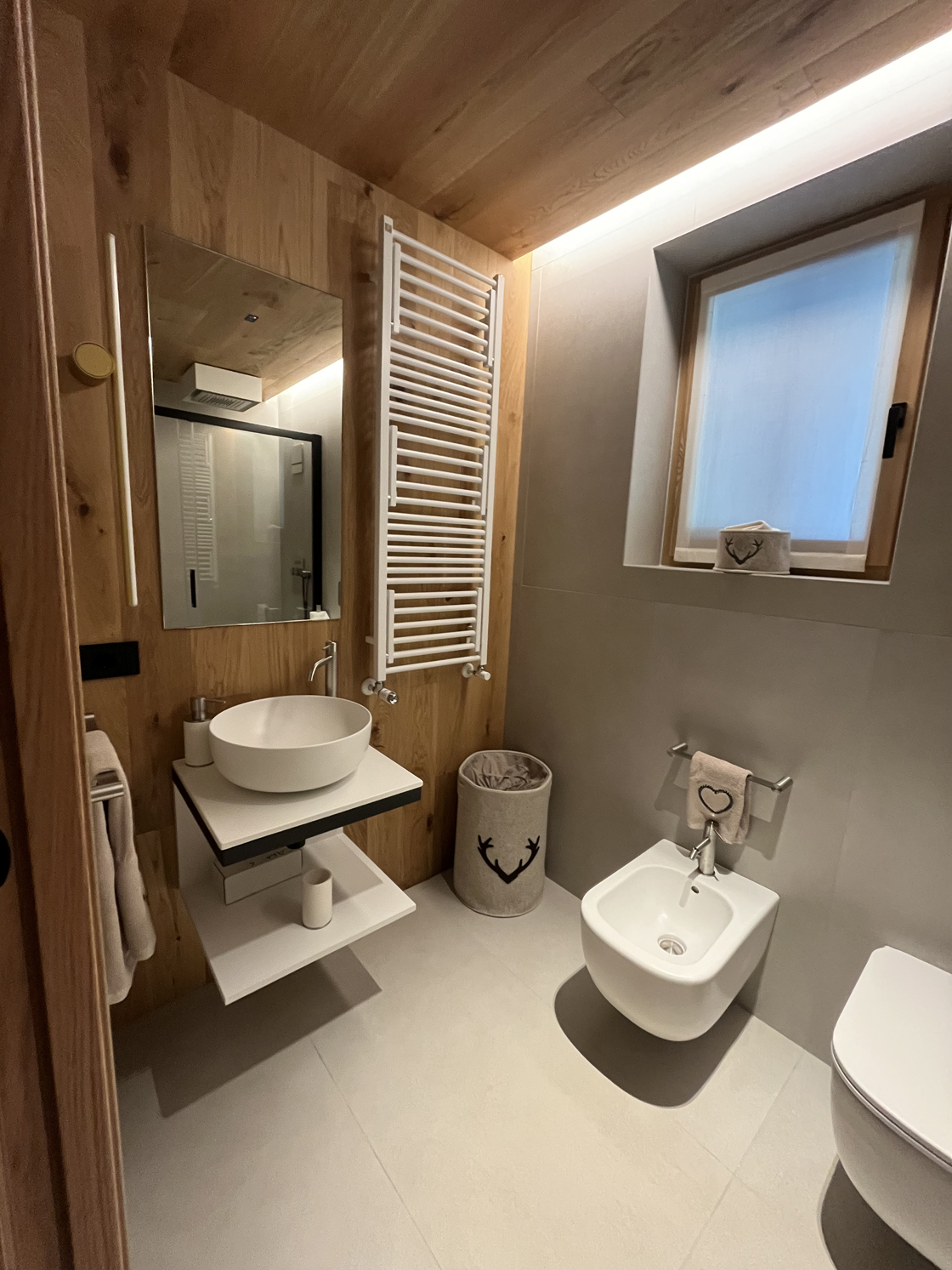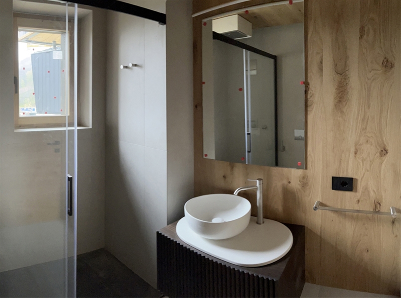 L’architecture s’inspire des refuges d’altitude et des implantations walser, mais les relit avec un langage essentiel et actuel : de grandes baies vitrées, le bois et le métal dessinent des volumes purs et lumineux, tandis que les surfaces en grès cérame Lea Ceramiche garantissent esthétique, résistance et sécurité dans les zones les plus sensibles de l’habitat contemporain.