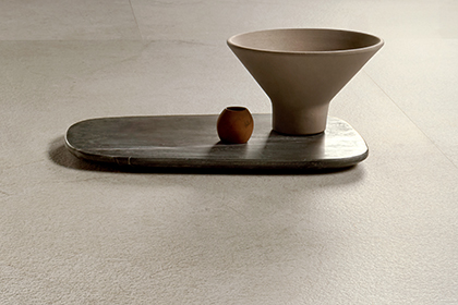 La même collection dans la chaude nuance Earth a été utilisée pour l'intérieur, toujours dans le format 60x120 cm et en 9,5 mm d'épaisseur ; dans la salle de bains - sur le mur - on a utilisé le décor Muretto dans la couleur White et dans le format 30x60 cm. Il s'agit donc d'une collection ayant une forte capacité évocatrice, en mesure de générer différentes sensations tactiles pour donner aux espaces une harmonie fluide, en annulant toute distinction entre les dimensions artificielles et naturelles.